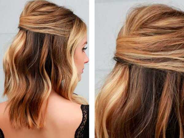 В этом случае пряди перекрещиваются на затылке, и прическа таким образом получается очень изящной, необычной. По сути, это вариант мальвинки, но «модернизированный». Если волосам не хватает объема, можно их немного начесать, а если шевелюра достаточно пышная, то можно просто расчесать пряди.