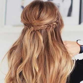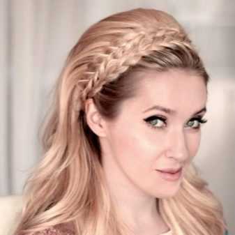 Делать прическу просто: необходимо взять сбоку ото лба небольшую прядку волос и вплести ее вокруг всей головы наподобие ободка. Основная масса локонов при этом должна оставаться распущенной. Важно тщательно расчесать незаплетенные пряди, чтобы прическа смотрелась аккуратнее.