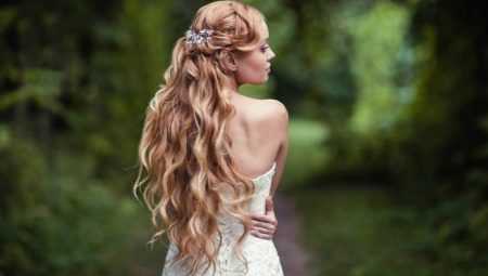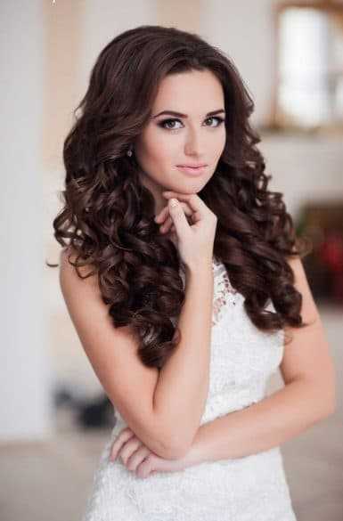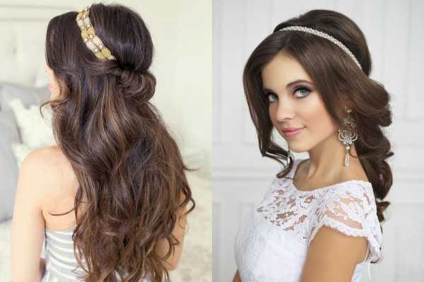 На кудрявые распущенные волосы можно одеть романтичный венок из живых цветов, элегантную диадему или ободок со стразами. Выбор зависит от стилизации свадьбы и вашего наряда.
