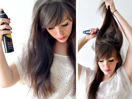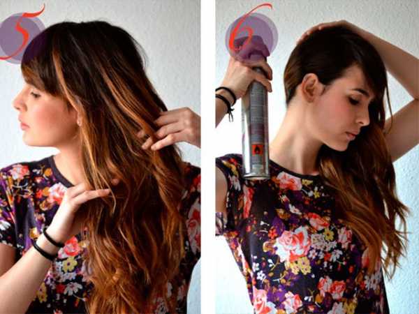- Помалу продвигайтесь к верхней части волос, по окончании обильно сбрызните волосы лаком. Если они очень длинные и густые, выберите средство с максимальной фиксацией, чтобы локоны под своим весом не выпрямились.