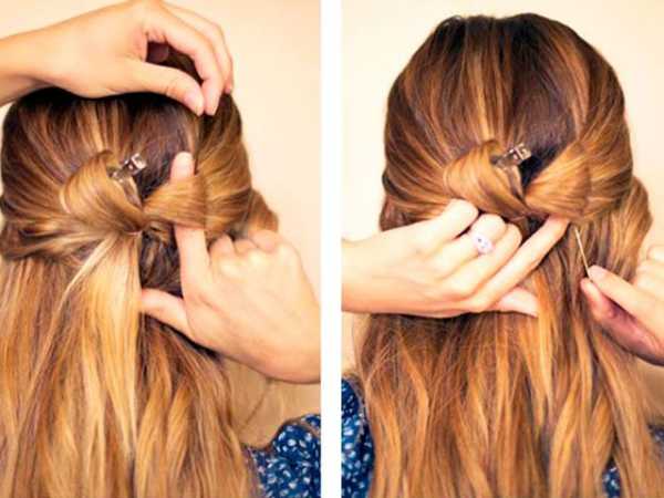 - Направляйте их в область чуть выше затылка и формируйте капельки – это будет половинки бантика.