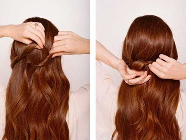 Очень красиво смотрятся жгуты из волос, сооруженные на затылке. В данном случае прядь следует брать от виска, и скручивая, уводить на затылочную часть, затем закрепить. Основная масса волос остается распущенной: следует тщательно расчесать пряди, возможно — сбрызнуть лаком.
