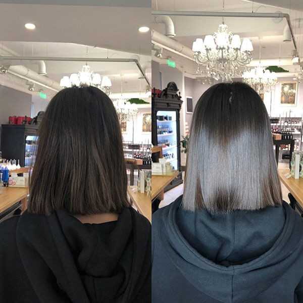После процедуры волосы заметно преображаются, становятся более ощутимыми, словно бы тяжелыми, но при этом мягкими и приятными на ощупь.