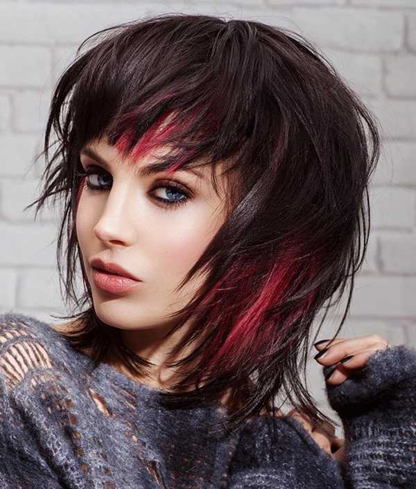 - лучше всего рваные варианты выглядят на профессионально окрашенных локонах с применением сложных техник. Контрастные сочетания тёмных и светлых цветов подчеркивают игру геометрических линий и объемов, которые создает прическа.