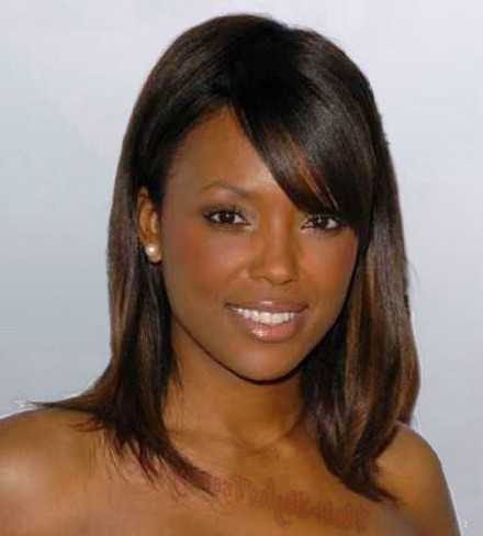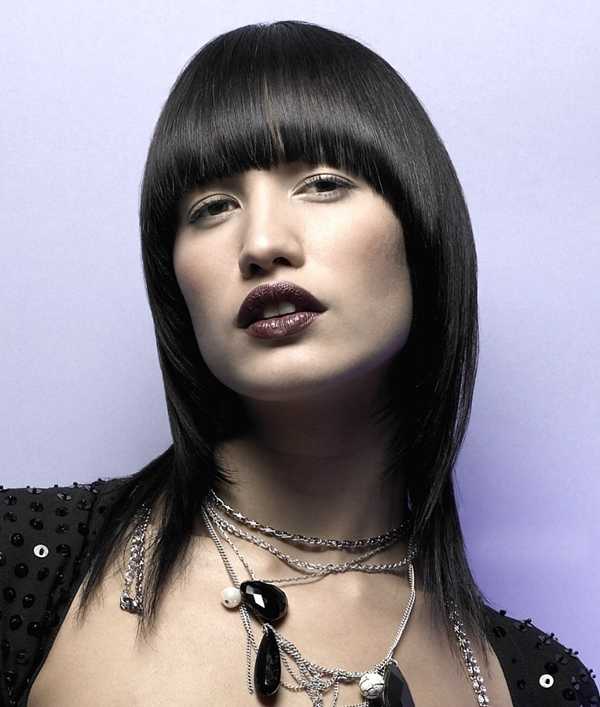 Такой вариант выбираю чаще всего девушки с идеально ровными волосами, в других вариантах она будет выглядеть небрежно. Девушкам с круглым типом лица следует обратить на неё внимание, поскольку она может удлинить лицо и придать ему необходимую асимметрию. Выбирая такую челку, отдавайте предпочтение каскадной прическе.