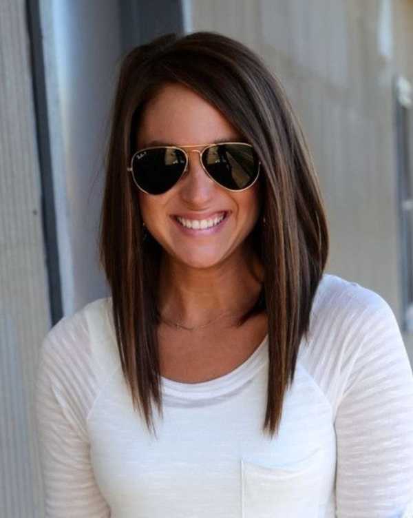 Популярны градуированные стрижки, выполненные на волосах средней длины. При такой длине верхние пряди достигают уровня бровей или подбородка, а нижние локоны на затылке могут быть длинными.