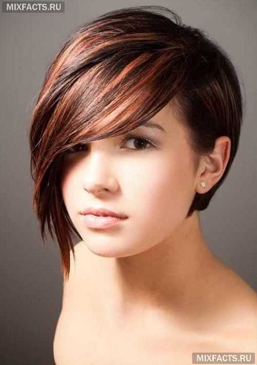 Короткая стрижка для тонких волос может быть более интересной, если мастер создаст необычную челку. Косые, удлиненные, ровные прямые варианты смотрятся очень оригинально и добавляют изюминку всему образу. Для жидких волос помогут добиться эффекта густоты: