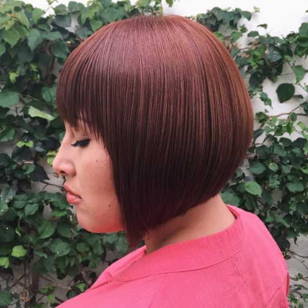 При создании стрижки боб на тонких коротких волосах мастеру важно соблюдать плавность переходов. Можно использовать в образе прямые и асимметричные челки, чтобы подчеркнуть изящность черт лица и скрыть большую лобную долю.