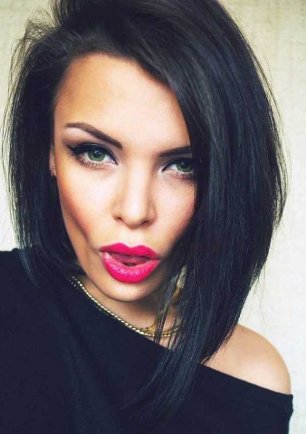 За счет четких граней и присутствия челки она выглядит одновременно игриво, модно и строго. Выстриженный затылок помогает добиться объема, а заостренные у лица длинные прядки усиливают созданный эффект. Использовать боб можно не только для коротких волос.
