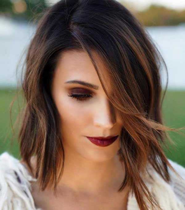 Средняя длина волос одна из самых популярных. Это связано с тем, что с такой длиной можно сочетать различные стрижки и типы челок. Лучше всего на средних волосах смотрятся: