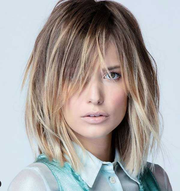 Стрижка с такой челкой лучше всего будет смотреться со средней длиной волос, идеально она будет сочетаться с легким каскадом.