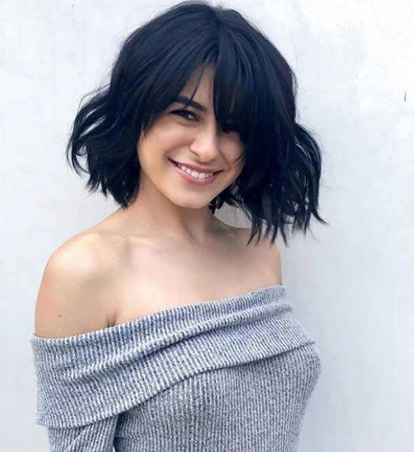 Каскад с короткой челкой может быть выполнен на среднюю длину волос или на длинные локоны. Стрижка подходит для квадратного, треугольного, овального и круглого лица. Отметим, что челка в данном случае может быть как ровной, так и рваной. Что касается укладки, то ее в данном случае можно не делать.